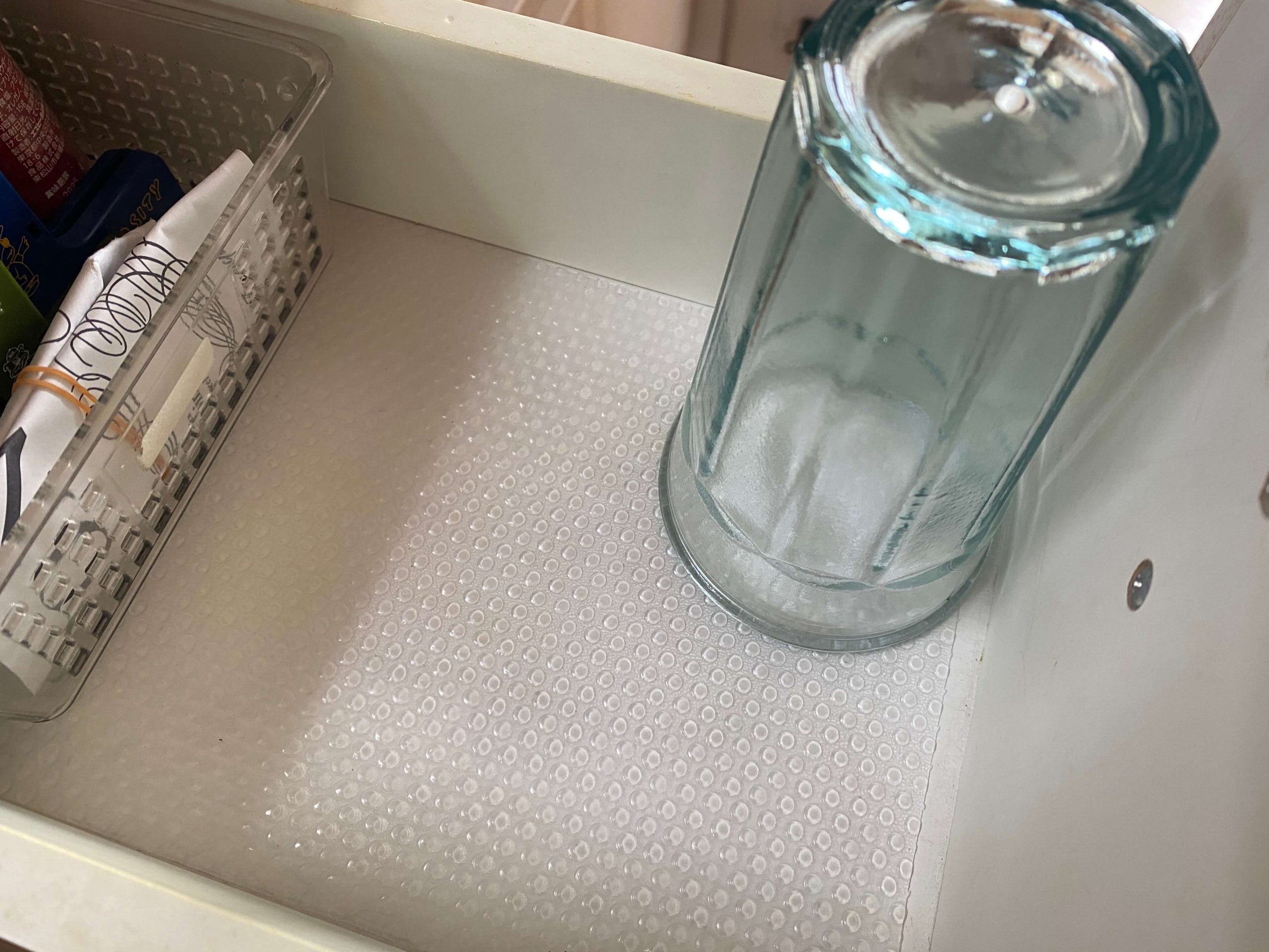 私たちはニトリの「抗菌すべり止めシート(35X180)」を使いました。ハサミで簡単にカットできるし、食器が固定されるので使ってよかったです。