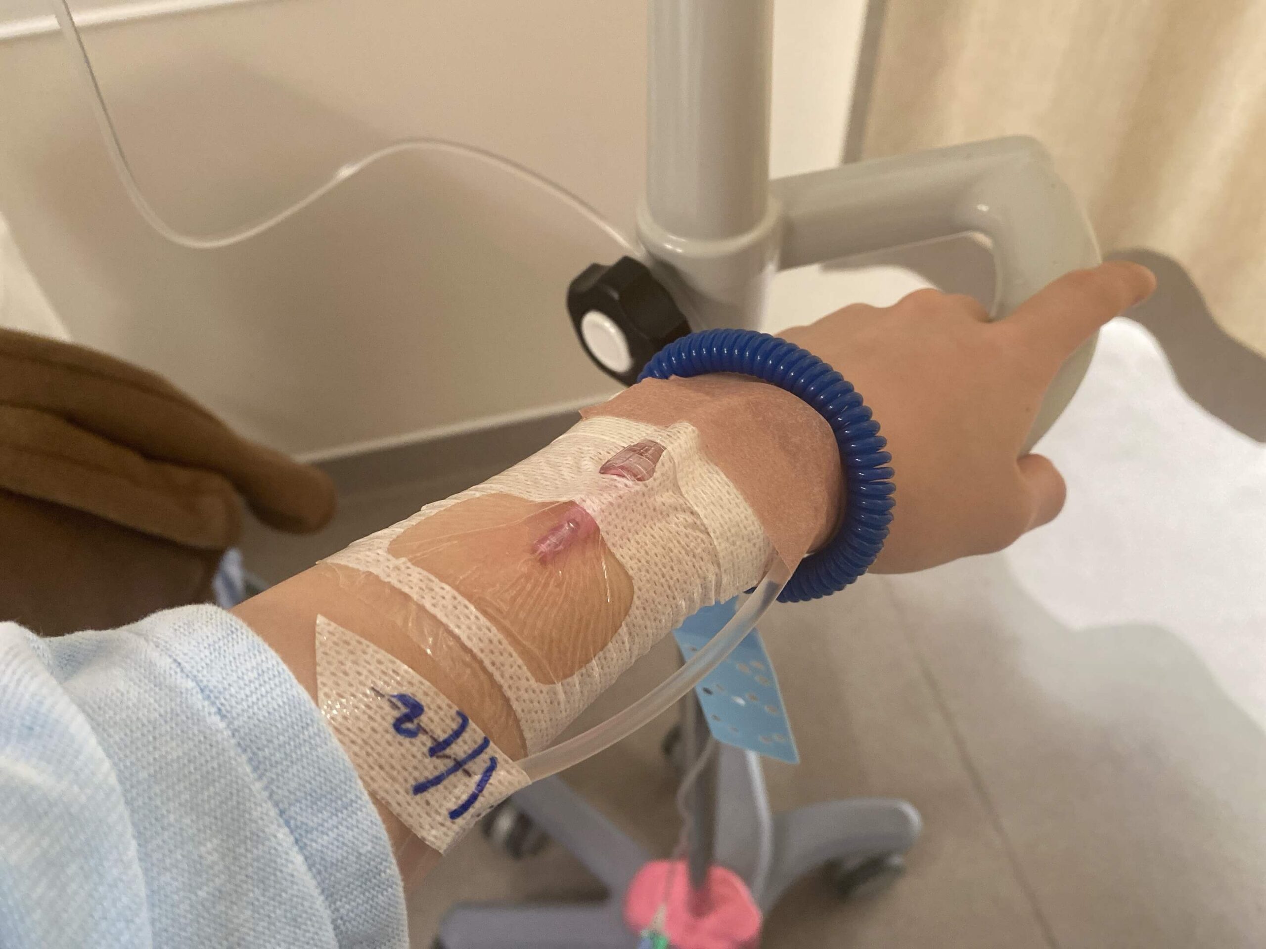 7時半くらいに「手術着」と「着圧ソックス」に着替えて、腕に点滴の針を刺されました。(点滴の針は結構太めでしばらく痛かったです。)