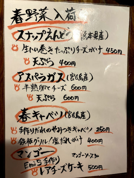 焼鳥居酒屋tanのメニュー